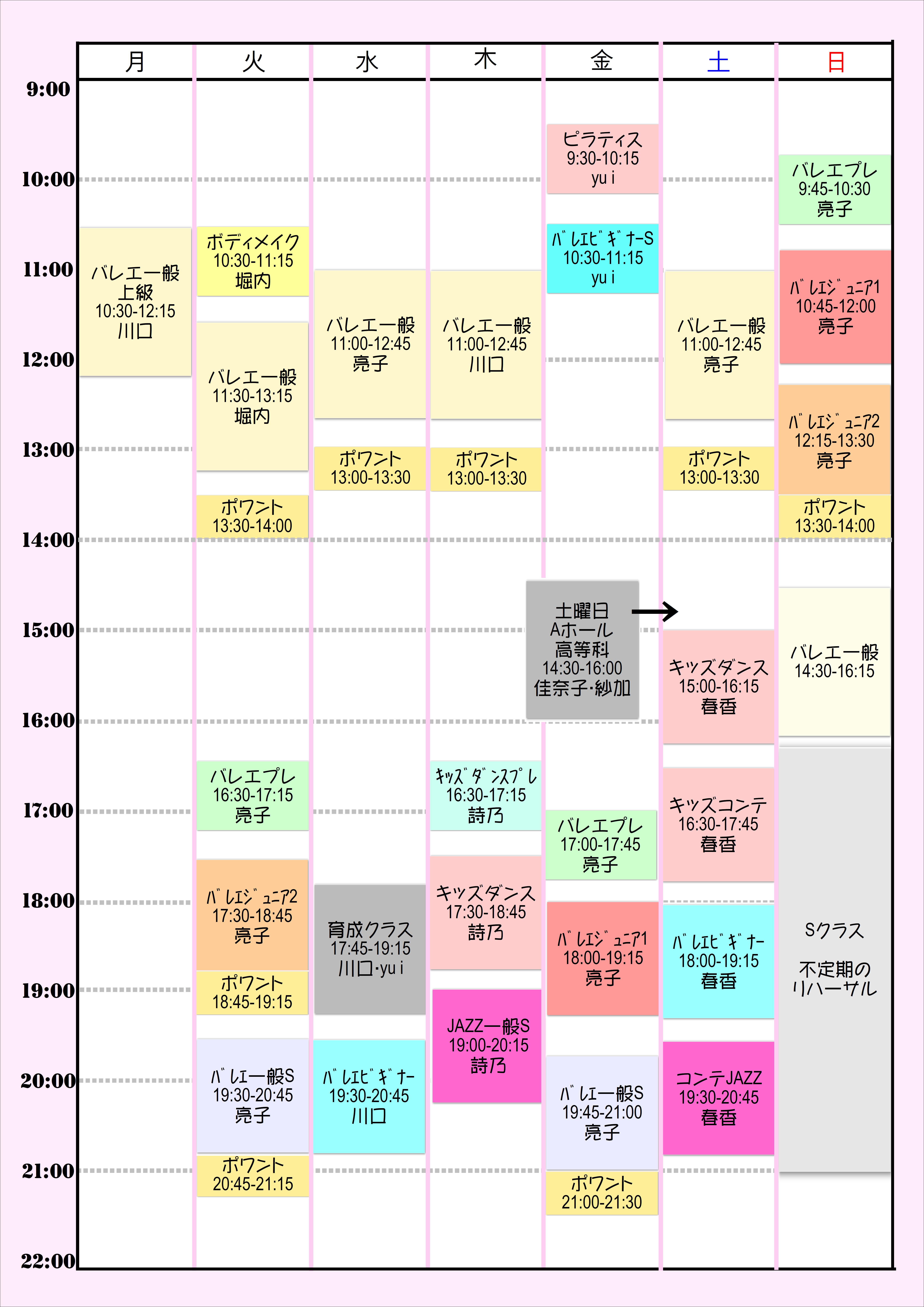 2025.05.06 | ボディメイククラスは火曜日10:30~に移動します。フォームローラー等道具を使いながら体のケアが出来ます。また体の動かし方を学んでけがの防止をしましょう。ピラティスがベースとなっていてとても受けやすいクラスです。 |